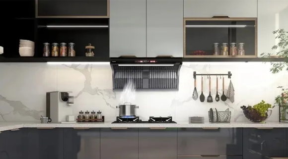 G500防爆免清洗集成灶一臺就集合了:煙機(jī)、灶具、蒸箱、烤箱、空氣炸鍋、電燉鍋等。