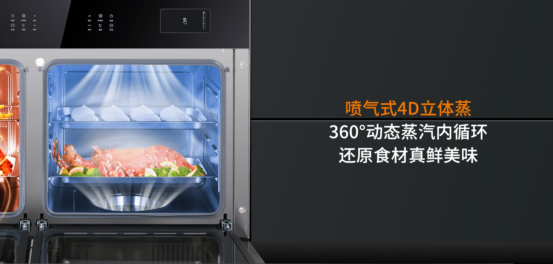 噴氣式4D立體蒸加上360°動(dòng)態(tài)蒸汽內(nèi)循環(huán),讓食材方方面面、內(nèi)外都均勻受熱,還原食材真鮮美味,讓美味輕松上桌。