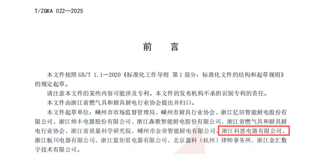 此次榮膺團(tuán)標(biāo)起草單位,是科恩十余載載譽(yù)前行的又一高光時(shí)刻。在榮譽(yù)殿堂中,高新技術(shù)企業(yè)認(rèn)定與CNAS認(rèn)可實(shí)驗(yàn)室彰顯其科研實(shí)力;行業(yè)標(biāo)準(zhǔn)起草單位、集成灶團(tuán)體標(biāo)準(zhǔn)起草單位、集成水槽標(biāo)準(zhǔn)參編單位等頭銜,“廚電行業(yè)十大品牌”“守合同重信用企業(yè)”等榮譽(yù),印證其在標(biāo)準(zhǔn)制定領(lǐng)域的持續(xù)深耕,體現(xiàn)市場(chǎng)與社會(huì)的雙重認(rèn)可。同時(shí),作為中國(guó)五金協(xié)會(huì)、浙江省燃?xì)饩吆蛷N具廚電行業(yè)協(xié)會(huì)理事單位,科恩始終積極參與行業(yè)治理,用實(shí)際行動(dòng)踐行領(lǐng)軍企業(yè)的責(zé)任擔(dān)當(dāng)。