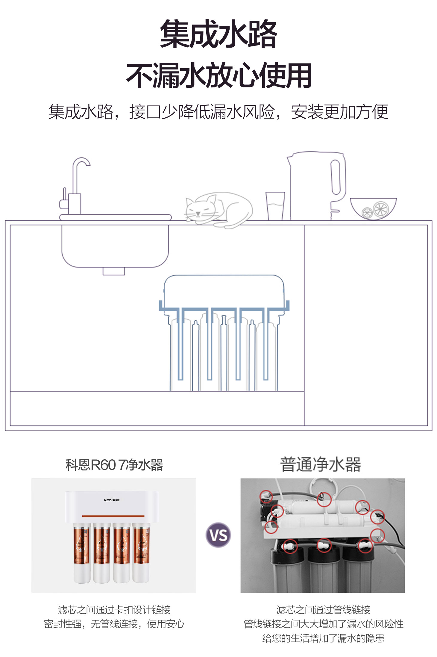 - 卡接式一體式濾芯,3秒換芯,方便快捷。