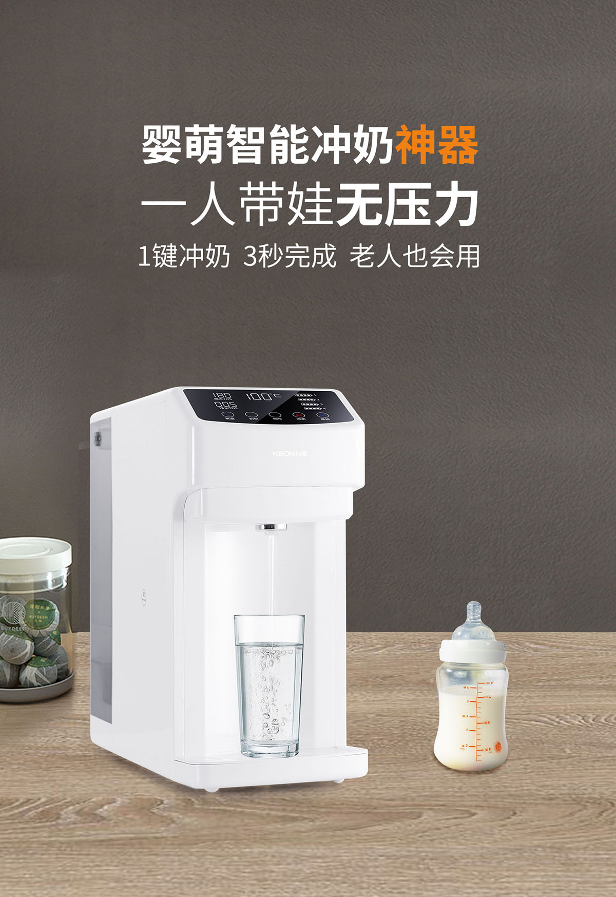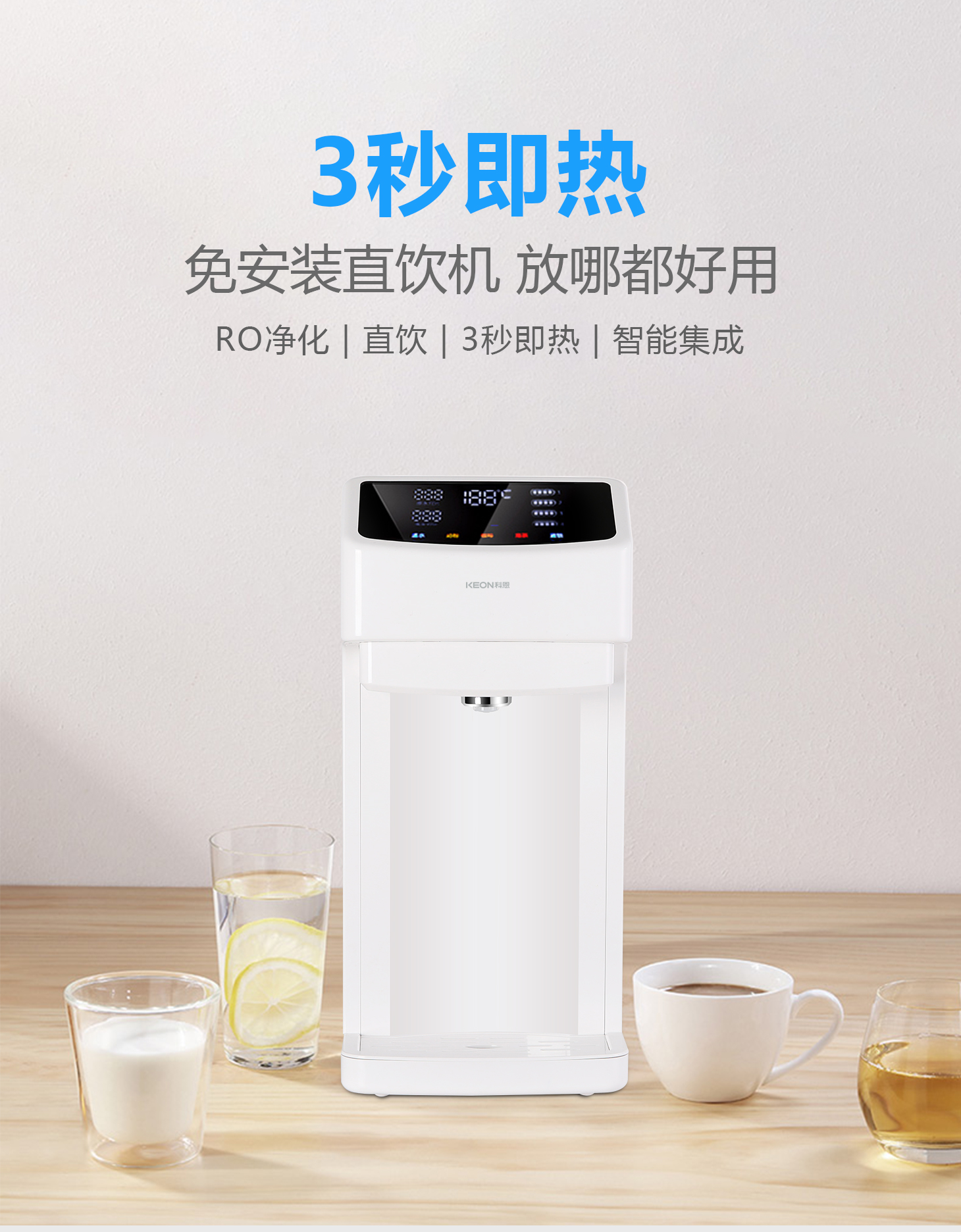- 3秒速熱,4檔溫控(常溫、泡奶、沖咖啡、泡茶),一鍵操作,方便快捷