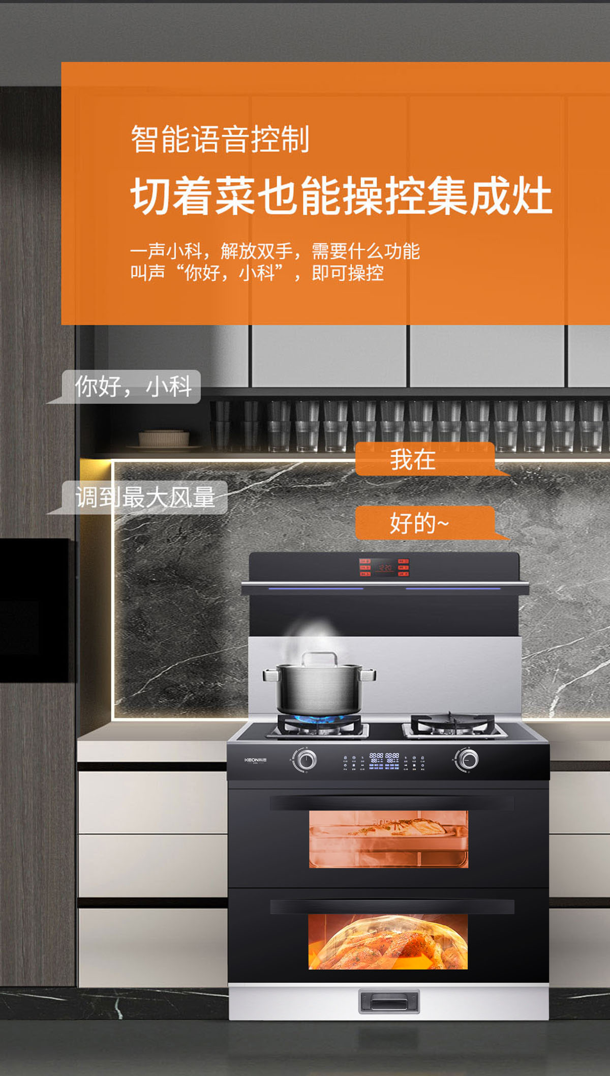 - 智能語(yǔ)音控制,上蒸下烤二合一,獨(dú)立控制省時(shí)又高效