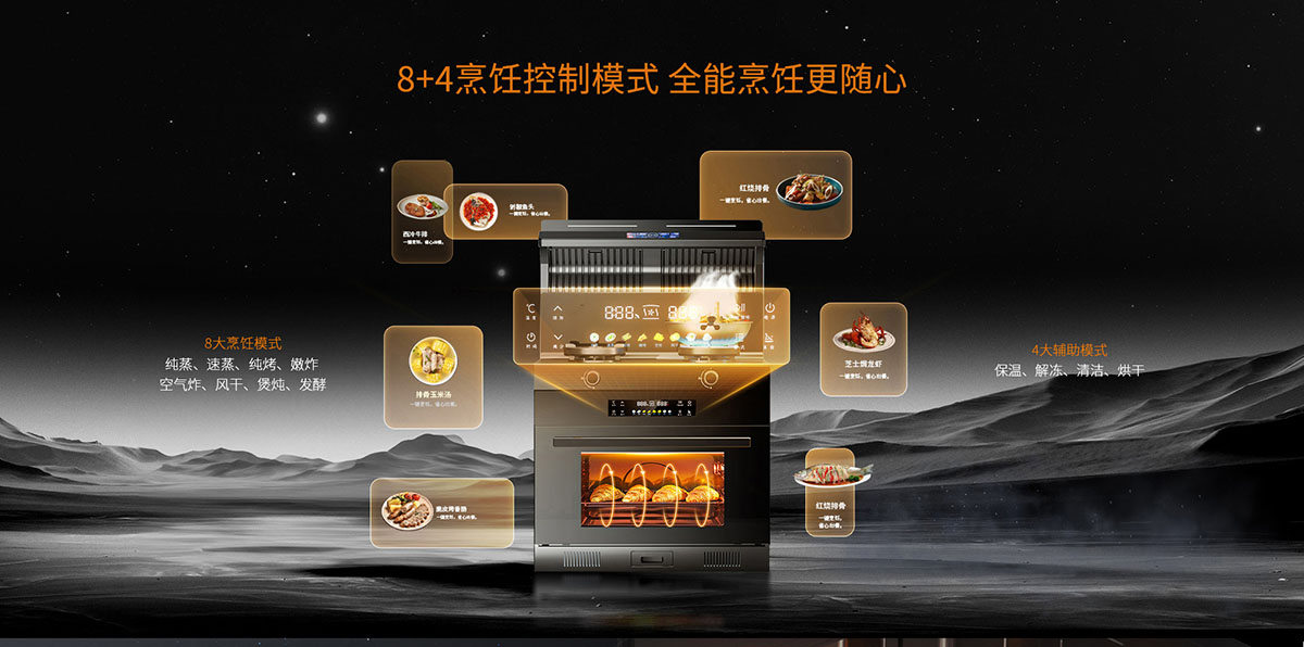- 73L大容量、8大模式、4大輔助功能,蒸烤炸燉四位一體