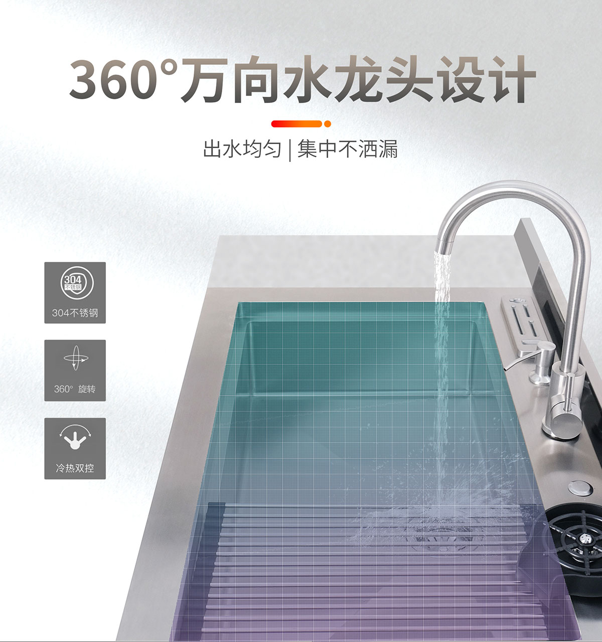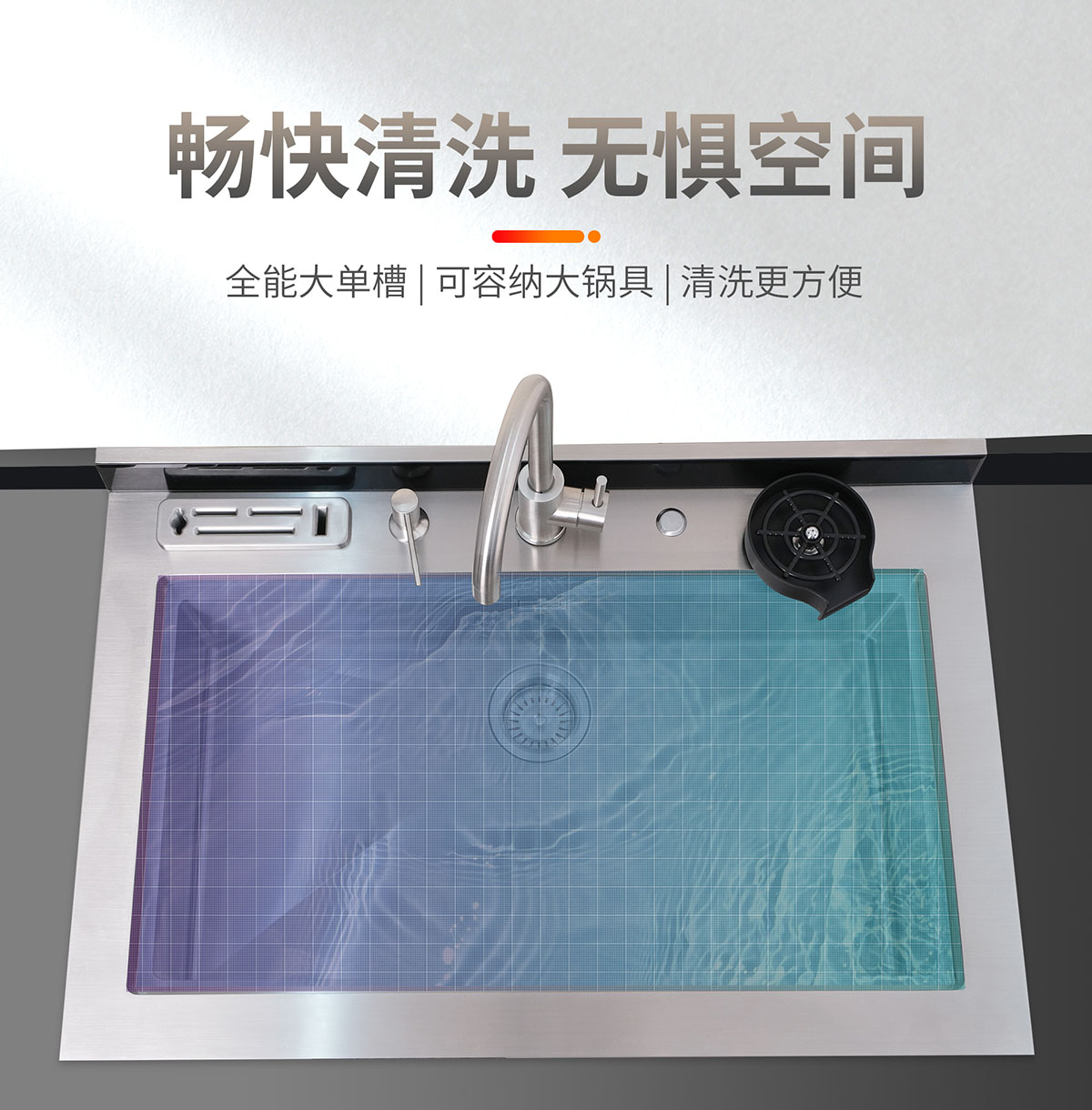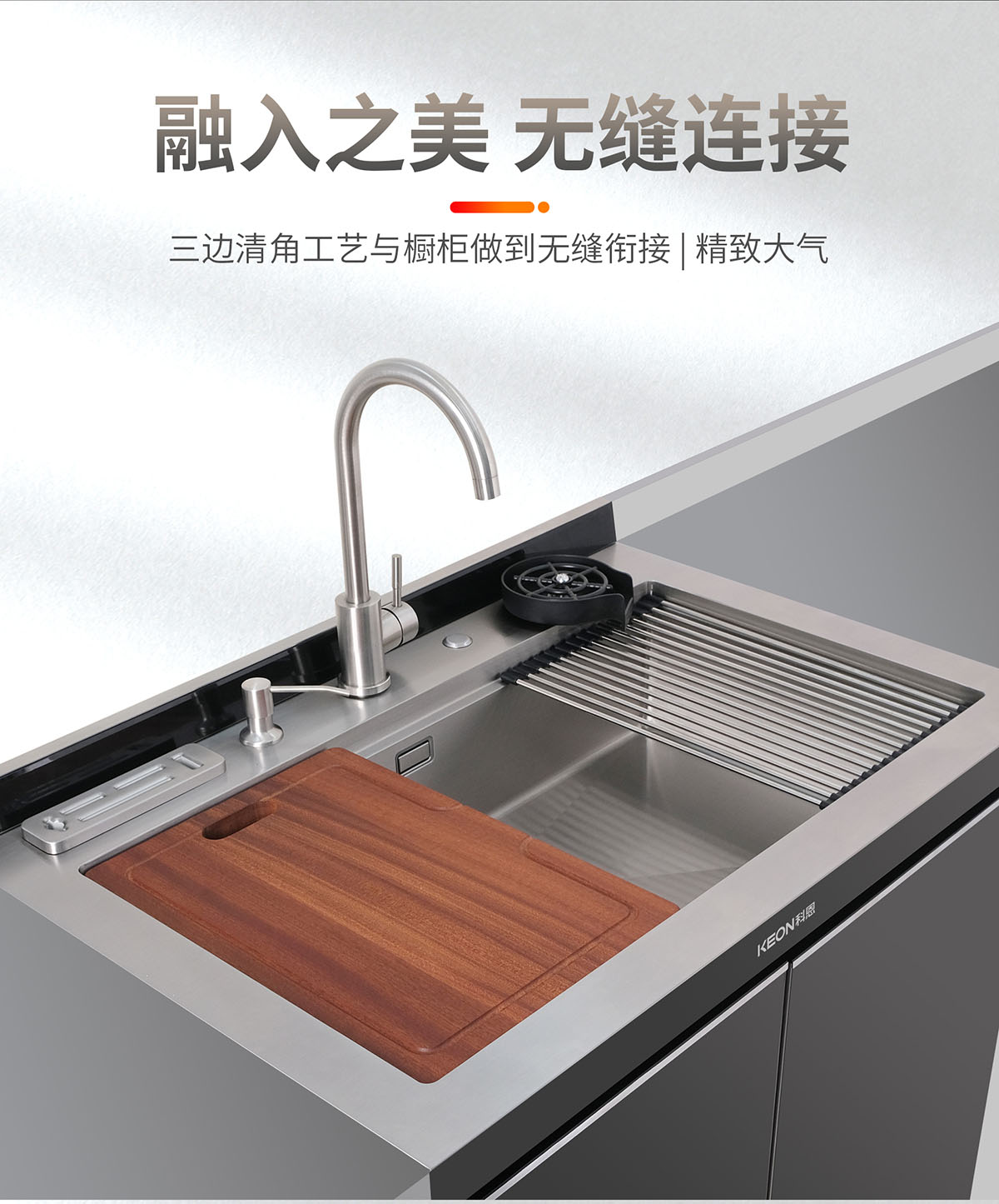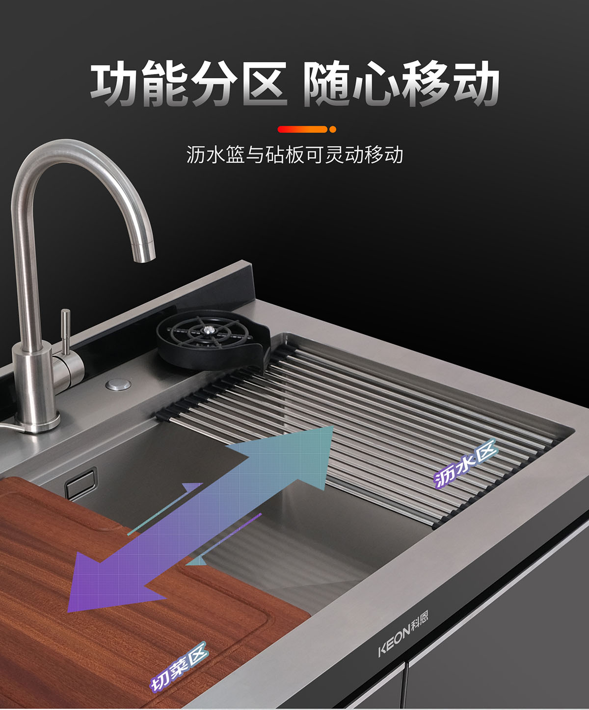 - 瀝水籃與砧板可靈動(dòng)移動(dòng),功能分區(qū),隨心移動(dòng)