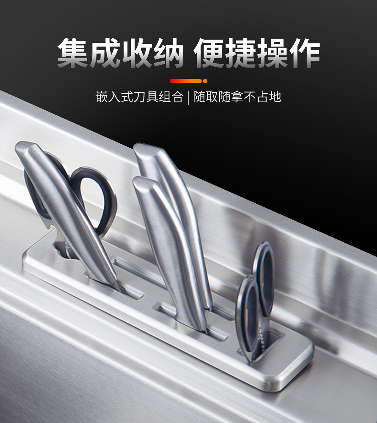 - 集成收納 便捷操作,嵌入式刀具組合,隨取隨拿不占地