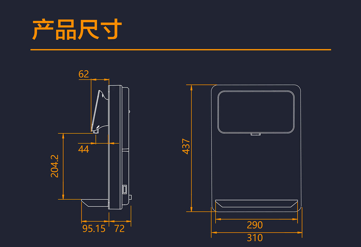 外形尺寸:310x437x(72+95.15)mm