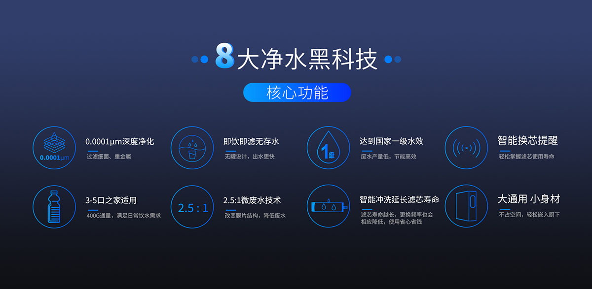 - RO膜長(zhǎng)效續(xù)航,高精度反滲透,強(qiáng)凈耐用