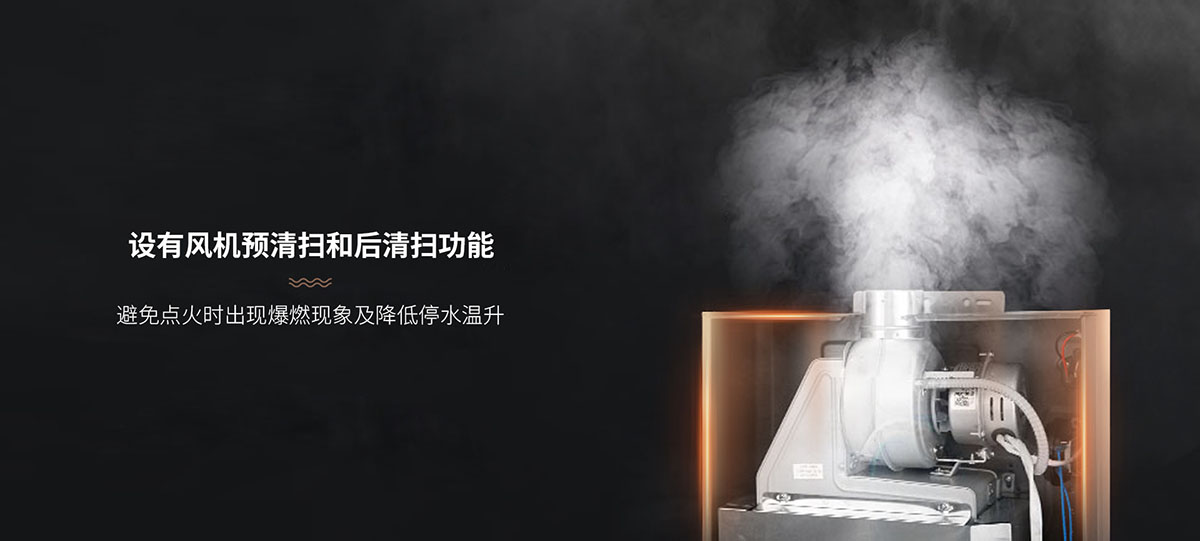 - 設有⻛機預清掃和后清掃功能,避免點⽕時出現(xiàn)爆燃現(xiàn)象及降低停⽔溫升
