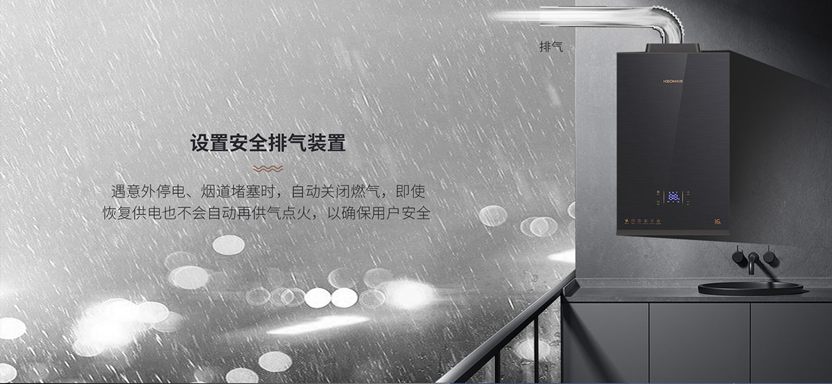 - 設置安全排⽓裝置,遇意外停電、煙道堵塞時,⾃動關閉燃⽓,即使恢復