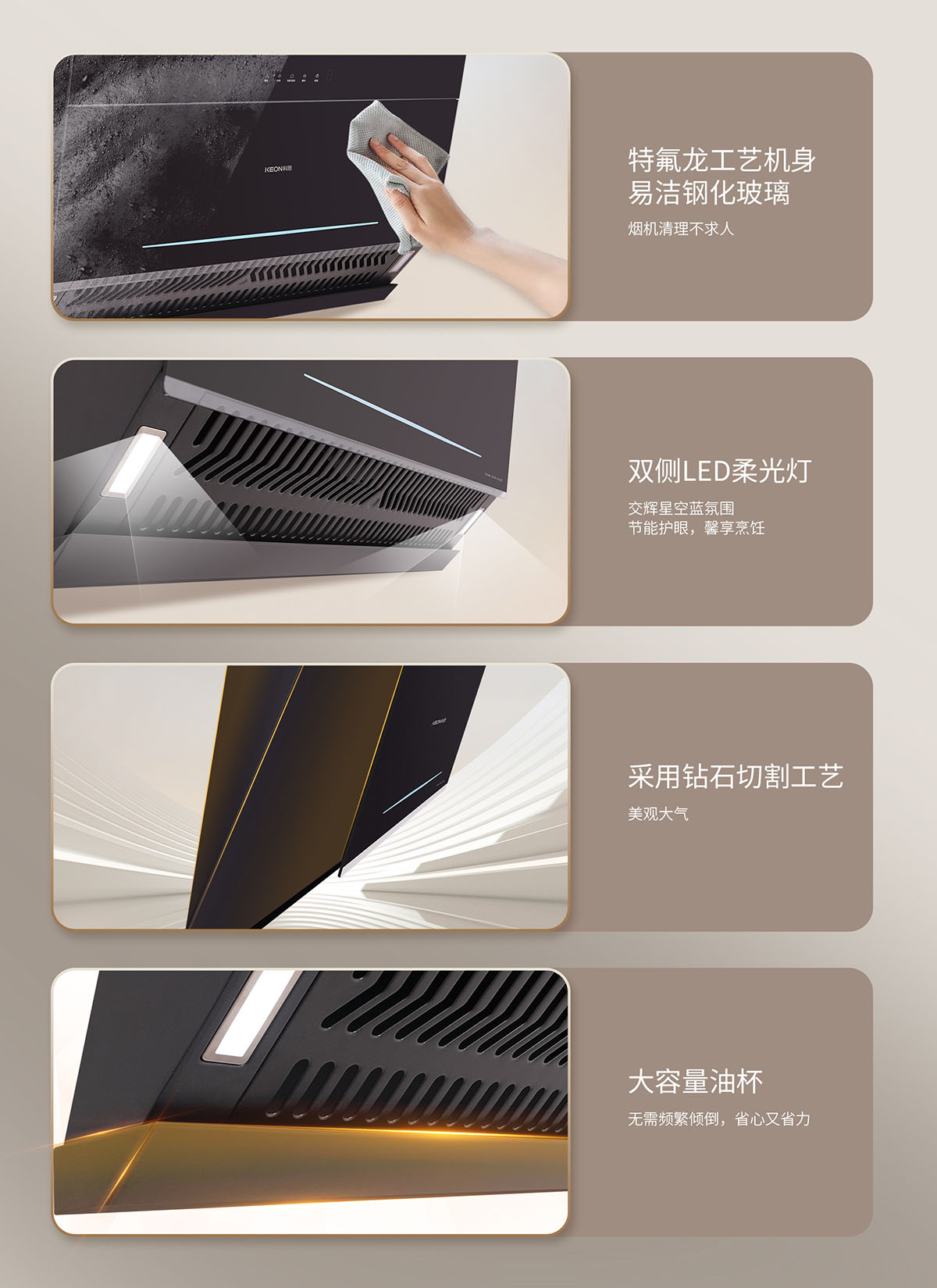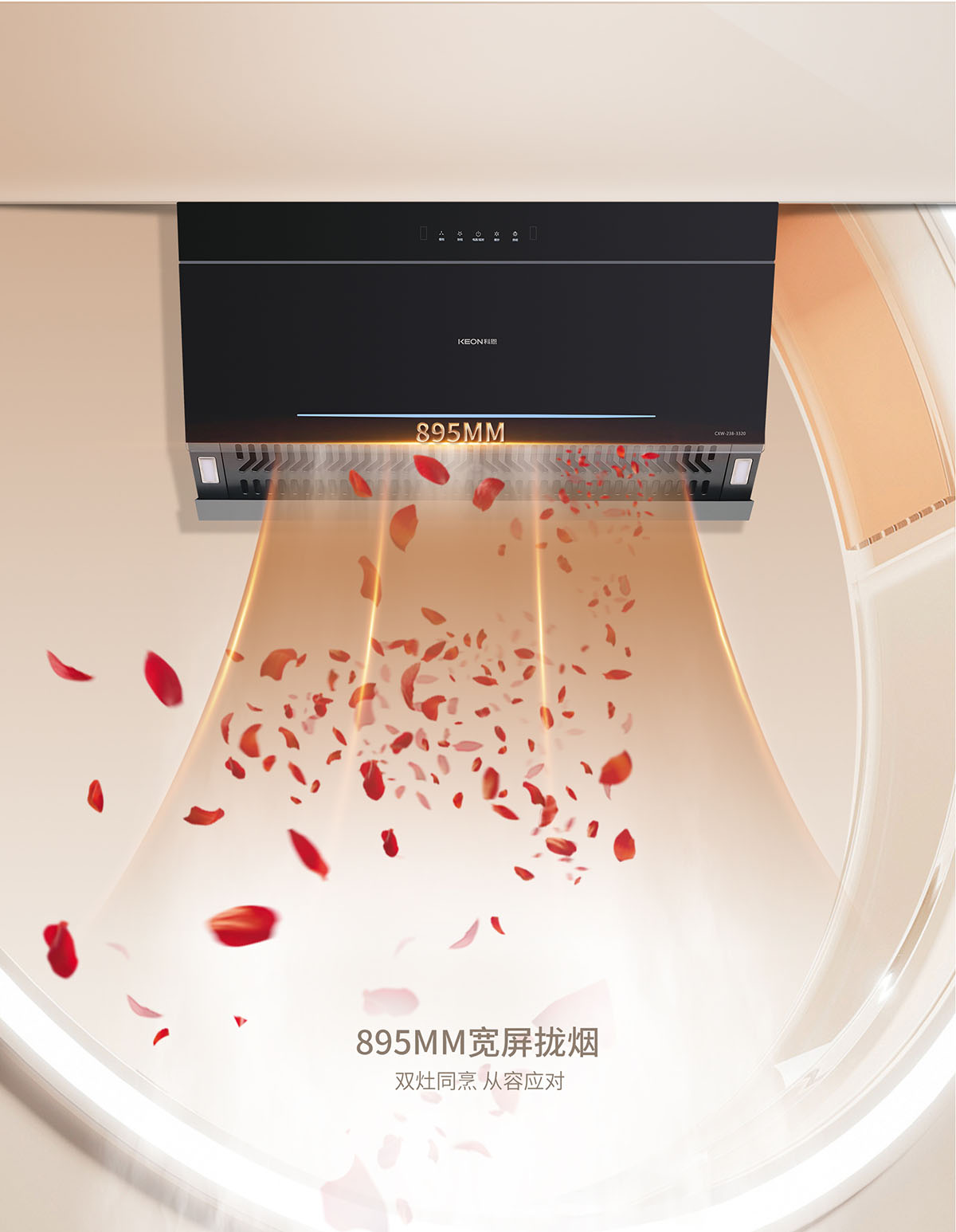 - 895MM寬屏攏煙,從容應(yīng)對雙灶同烹