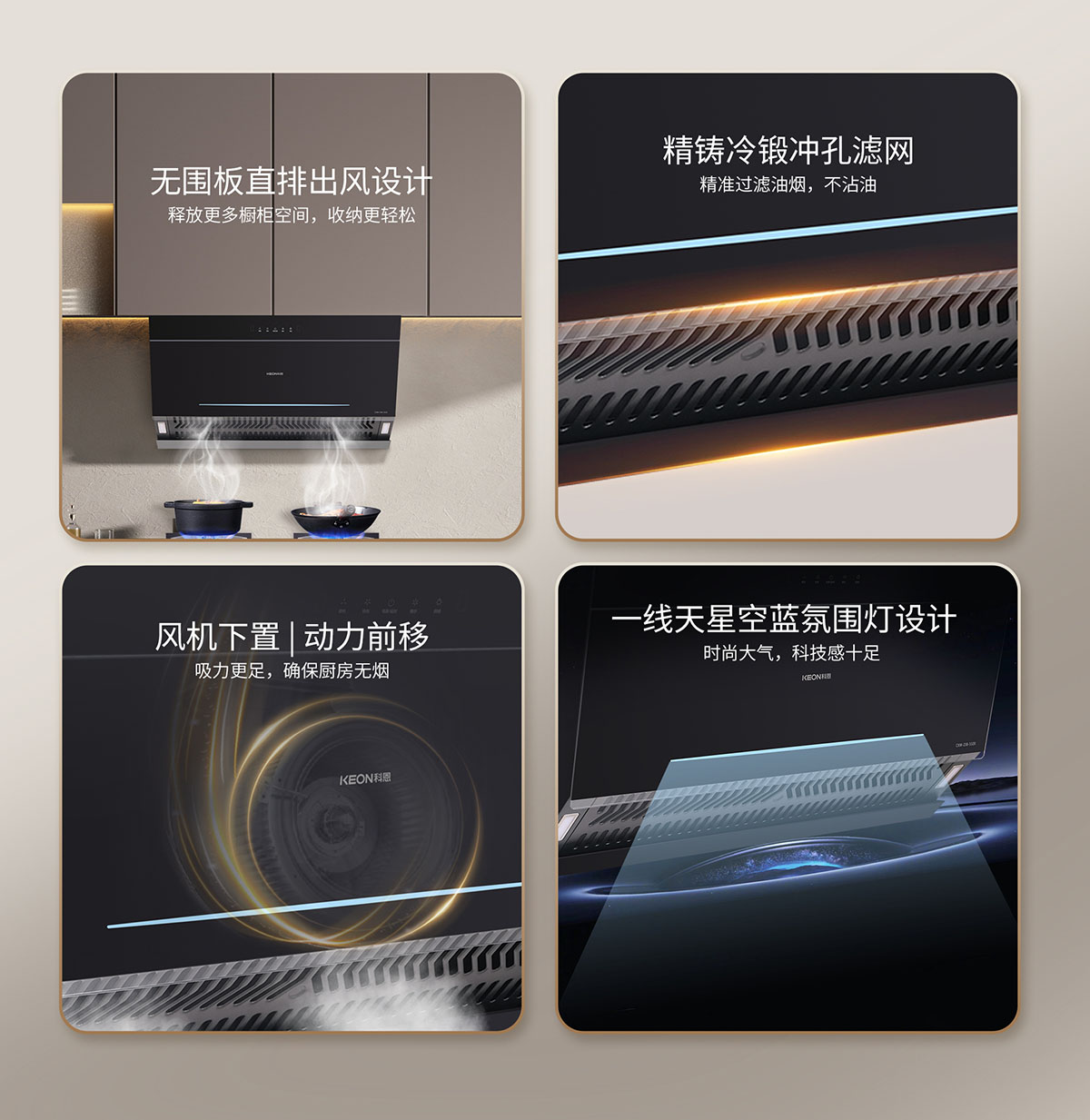 - 攏吸排三點一線,暢吸直排,高效凈煙