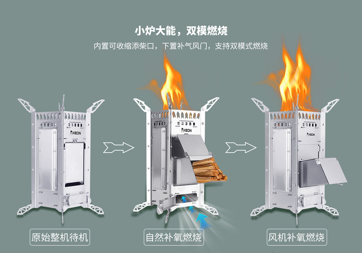 內(nèi)置可收縮添柴口,下置補(bǔ)氣風(fēng)門(mén),支持雙模式燃燒