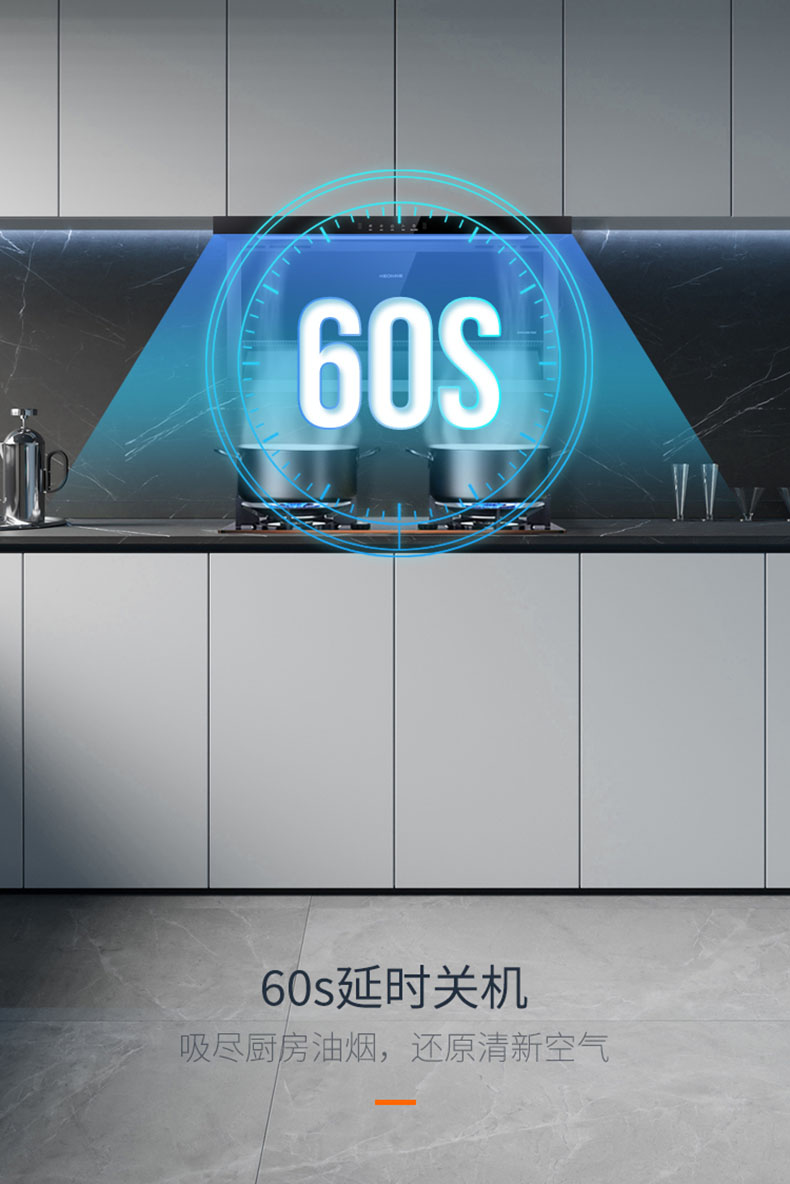 - 60s延時(shí)關(guān)機(jī)吸盡剩余油煙,吸盡廚房雜味,還原清新空氣