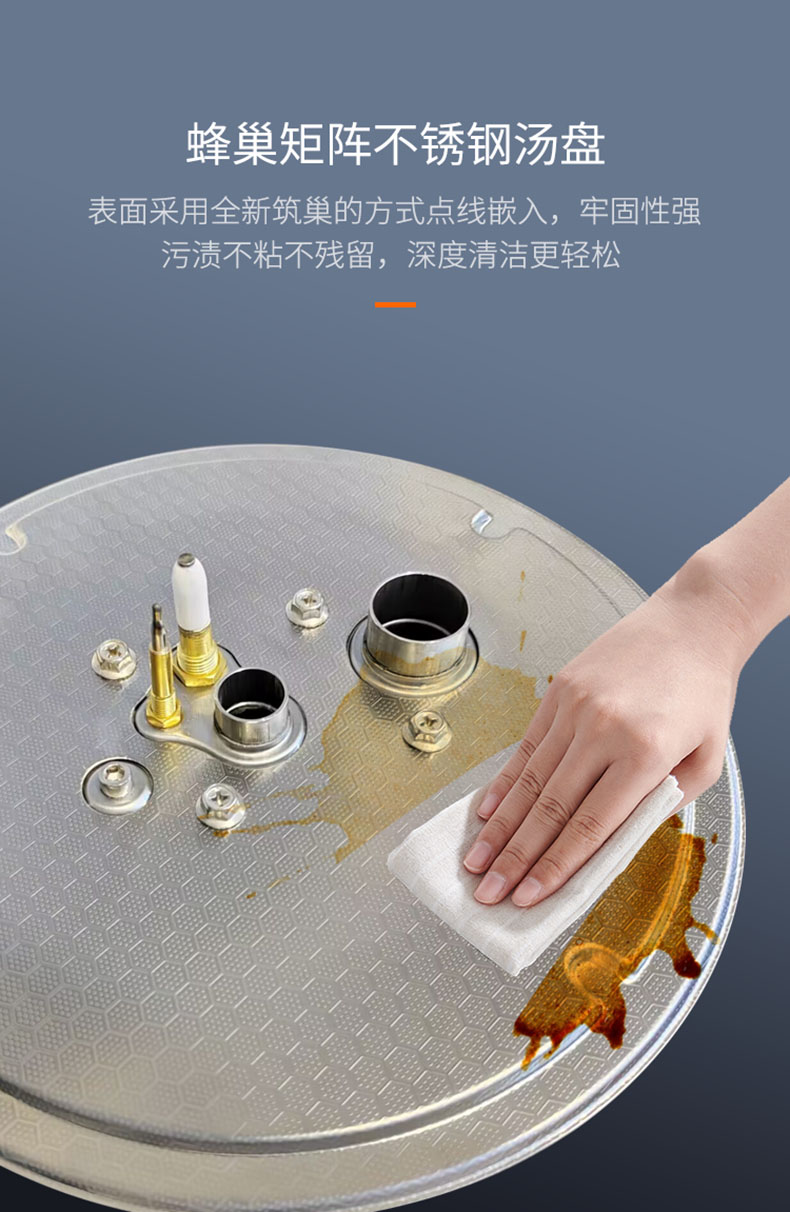 - 蜂巢矩陣不銹鋼湯盤,牢固易潔,打理更輕松