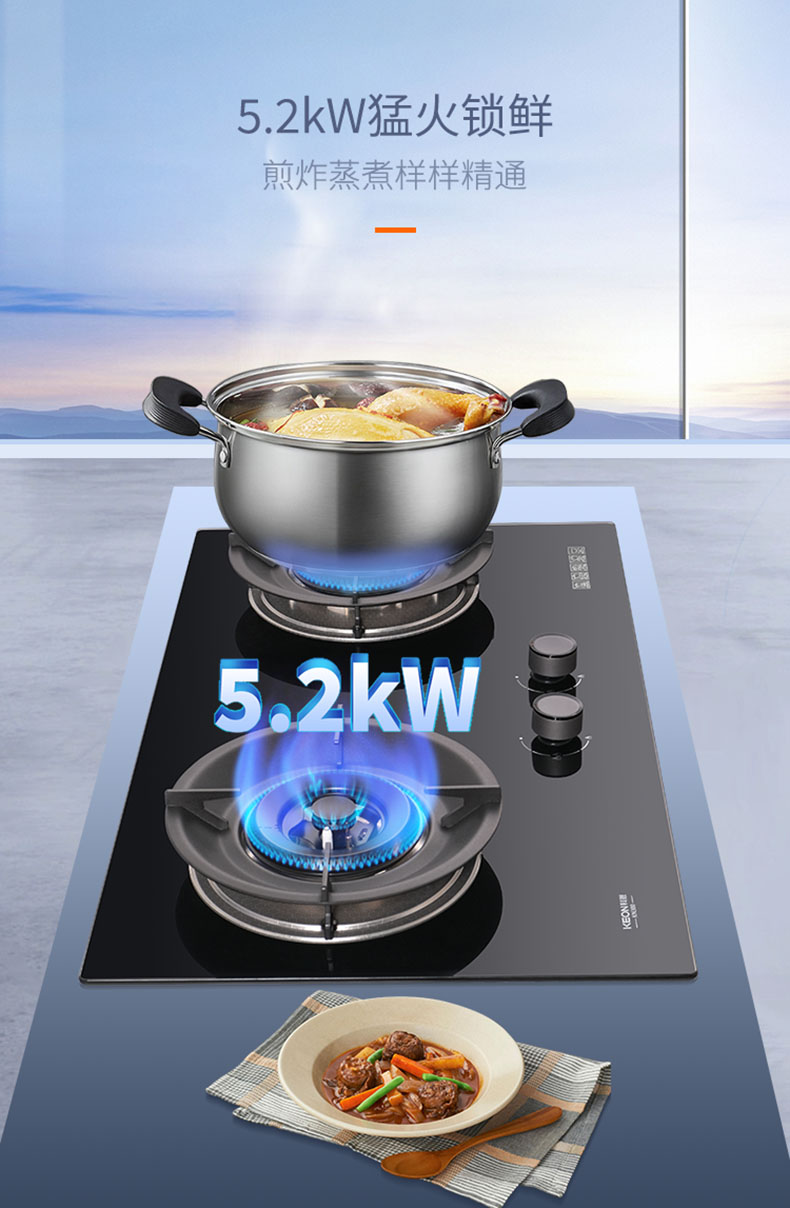- 5.2kW猛火力,煎炸蒸煮樣樣精通