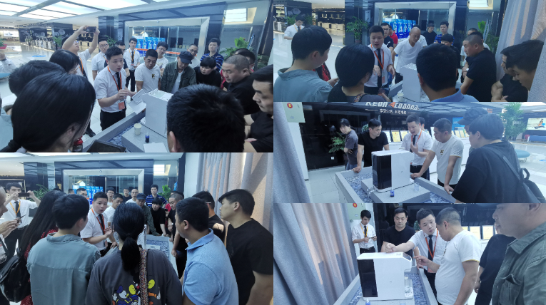 會(huì)議開始前,SVIP超級(jí)董事們?cè)诳贫骶F(tuán)隊(duì)的帶領(lǐng)下,到科恩展廳進(jìn)行現(xiàn)場(chǎng)觀摩科恩移動(dòng)水吧的產(chǎn)品功能特點(diǎn)展示體驗(yàn);科恩移動(dòng)水吧“以一抵六”的創(chuàng)新模式,免安裝技術(shù),超大液晶顯示屏,常溫、奶粉、泡咖啡、泡茶四檔溫控的暖心設(shè)計(jì),高達(dá)0.0001微米的RO反滲透技術(shù),七級(jí)精濾系統(tǒng)層層把關(guān)水質(zhì)的功能特點(diǎn),科恩移動(dòng)水吧的所有榮譽(yù)展示,皆讓參會(huì)人員進(jìn)一步加深了科恩移動(dòng)水吧的認(rèn)知,極大地增強(qiáng)了經(jīng)營(yíng)科恩移動(dòng)水吧的信心,為順利擴(kuò)大后續(xù)移動(dòng)水吧市場(chǎng)銷售提供了有利的保障!